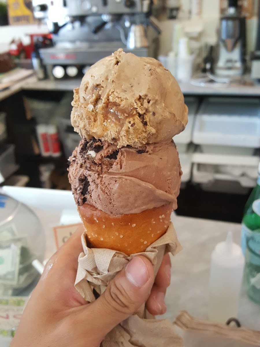 Delicious ice cream. Not as creamy as I’ve had at other places but still as equally delectable. The dark chocolate is so dense and fulfilling, the king of mangoes it irresistibly lucious like I’m literally scooping a frozen mango, and the oatmeal lace is seriously amazing.