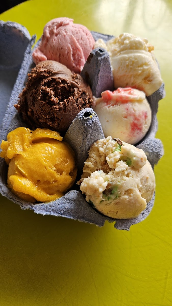 Great ice cream with tons of options (24 with 3 vegan), many with mix-ins. Wonderful texture (slightly stretchy), perfect sweetness and robust flavors. Prices are decent ($7 for 2 scoops), with flight being the best deal (6 smaller scoops for $8). They allow sampling. Our favorites were the cotton candy (spirulina so natural color), ooey gooey butter cake and guava. All of them were pretty good.